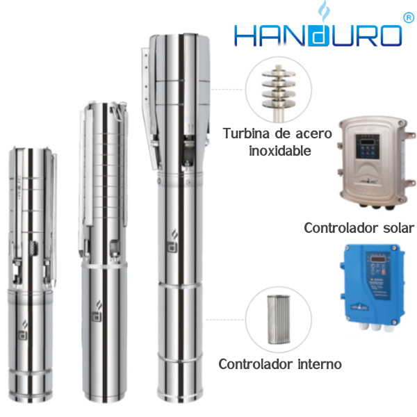 Bomba Sumergible H 1500W. Pozo 4". Bomba Centrifuga con controlador AC/DC